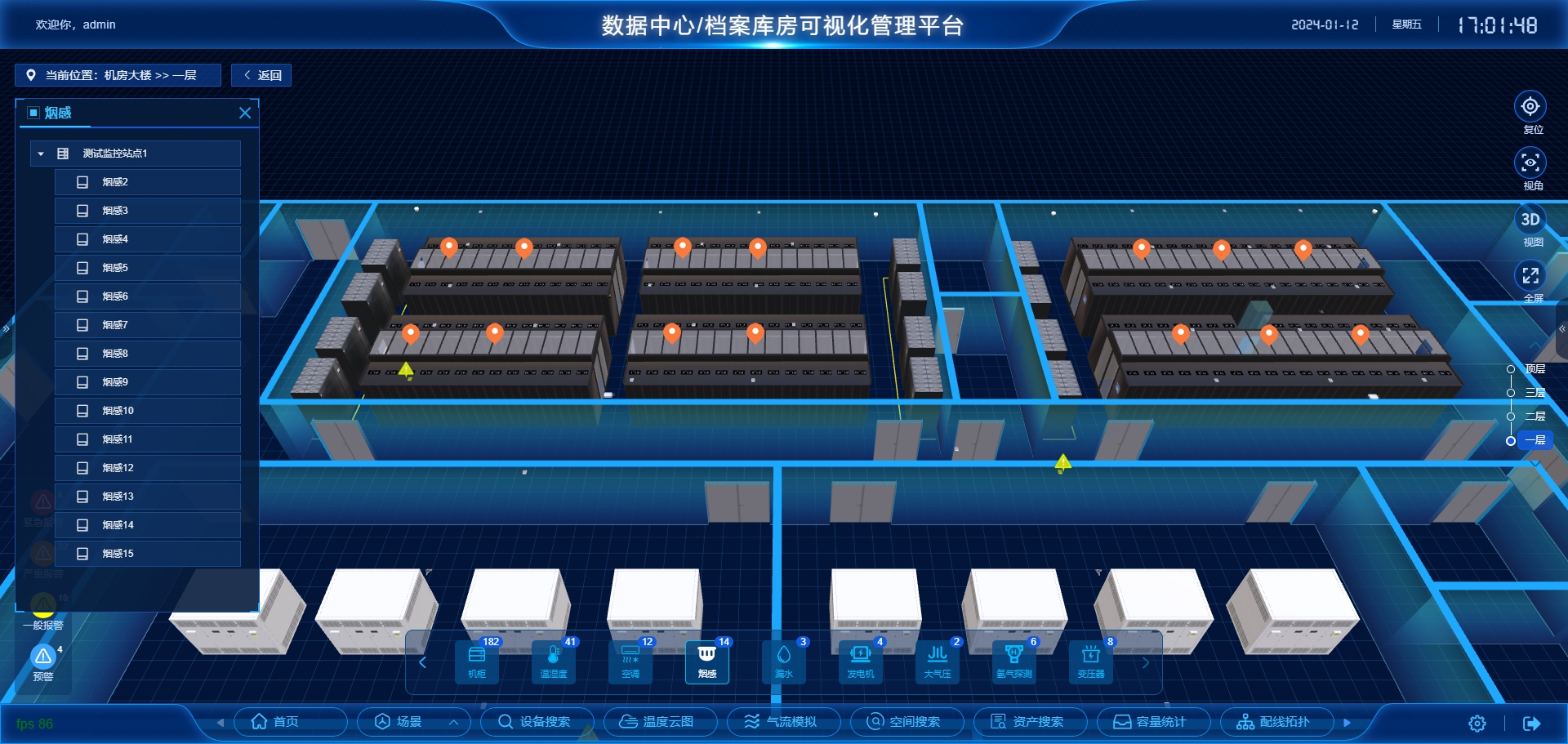 对于非温湿度设备,如果也需要通过3D小面板形式来展示关键参数,则需要在3D管理后台“监控设备管理-监控设备”页面配置要展示的数据项。